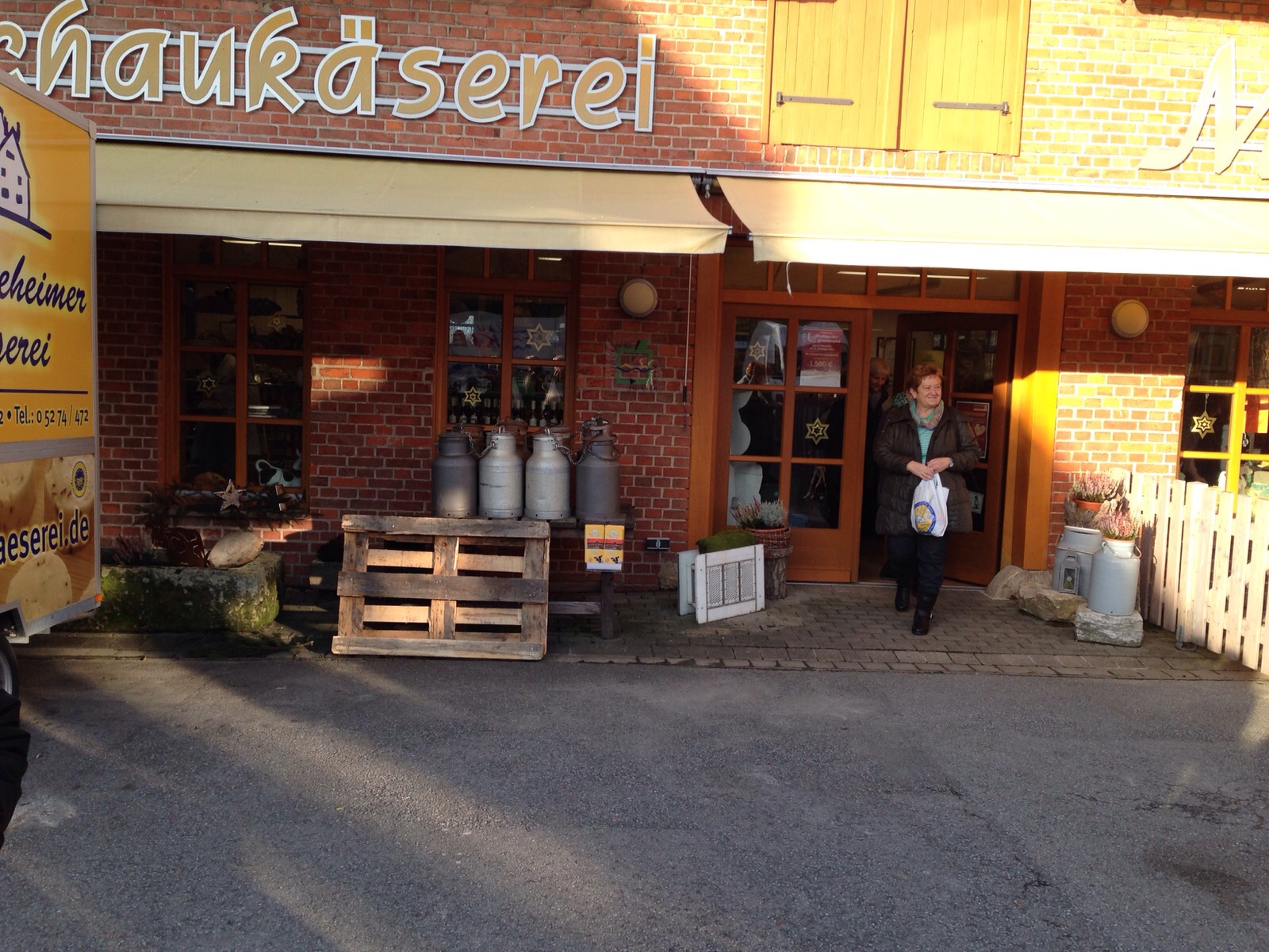Frisch gestärkt ging die Fahrt zur Schaukäserei Menne in Nienheim, diese vermarktet nicht nur Käse, sondern auch andere regionale Produkte, zb. Marmelade, Senf, Öle, Wurst oder Eier. Im Hofladen konnten die Käsesorten probiert und natürlich auch gekauft werden.
