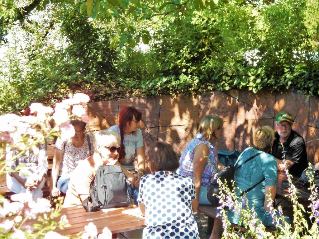 Nach so vielen Informationen während der Führung über Anbau und Maschinen zur Reinigung und Verpackung waren wir froh uns zum Mittagessen im Restaurant „Bordküche“ am Flugplatz in Reichelsheim setzen zu können. Das Essen war lecker und es blieb noch Zeit zu einem Plausch unter den Sonnenschirmen im Biergarten.